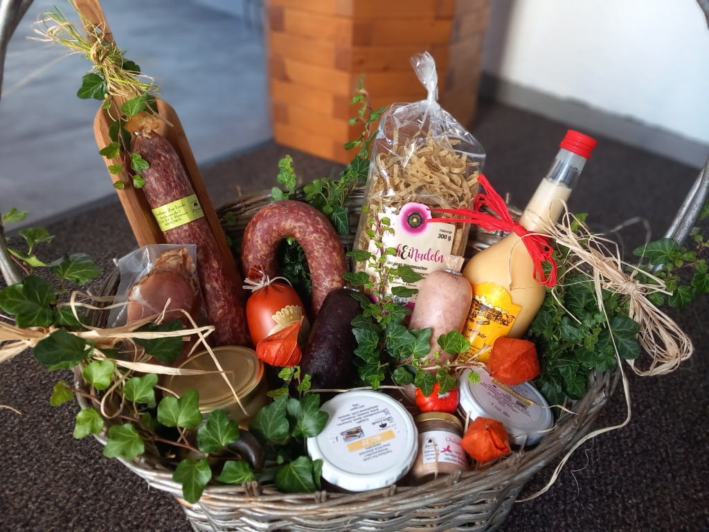 Zu unserem Haus gehört ein landwirtschaftlicher Betrieb mit eigener Hausschlachtung und Kartoffelanbau, so dass viele Speisen eigene Erzeugnisse sind. Auch sonst verarbeiten wir überwiegend frische regionale Produkte.